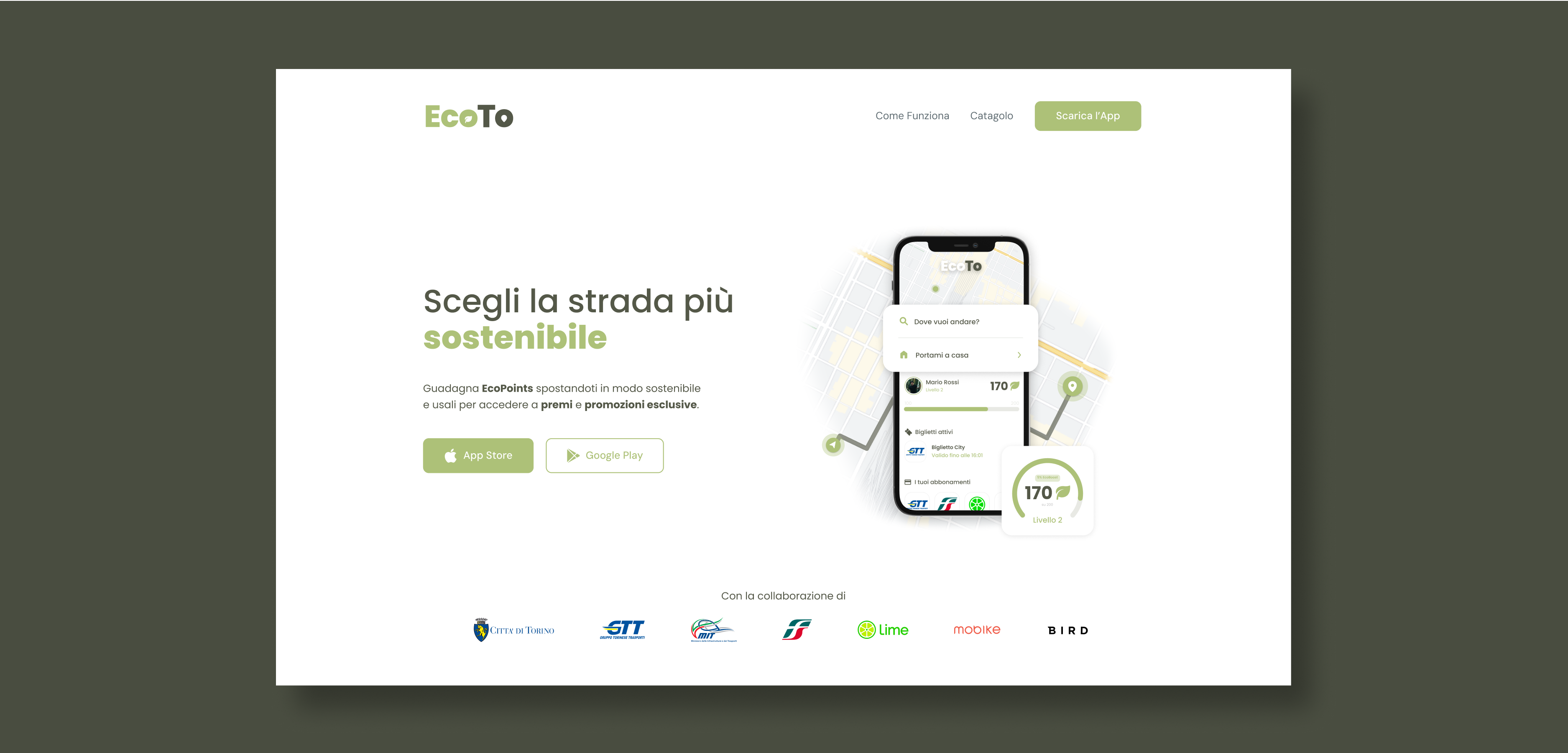 La nostra proposta per il progetto è stata la creazione di una Applicazione Mobile incentrata sugli spostamenti sostenibili nella città di Torino.